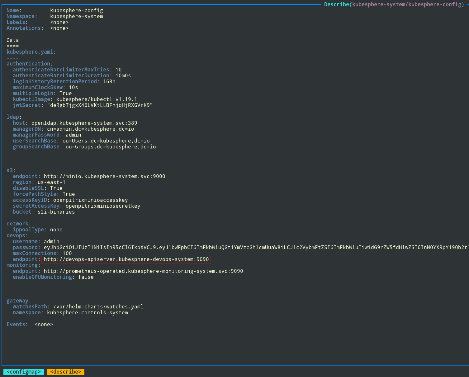 • Correct devops.endpoint config item in ConfigMap kubesphere-config